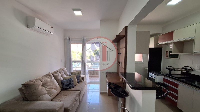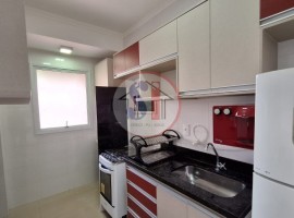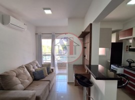 Excelente apartamento, completo em armários, 1 dormitório com ar condicionado, sala 2 ambientes com ar condicionado, sacada grande, cozinha planejada, área de serviço, 1 vaga de garagem e portaria 24 horas